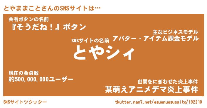 | 胡散臭い通販商品みたいなあだ名 | 『必ず成功するブレスレット…その名も「とやままこと」』 |