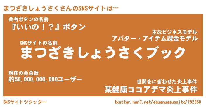 | ツイッター | まつざきしょうさくさんのツイッターID『neet_idle』 |