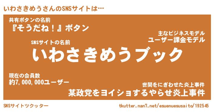 | 伝説のあだ名 | 『封印されし竜騎士いわさきめう』 |