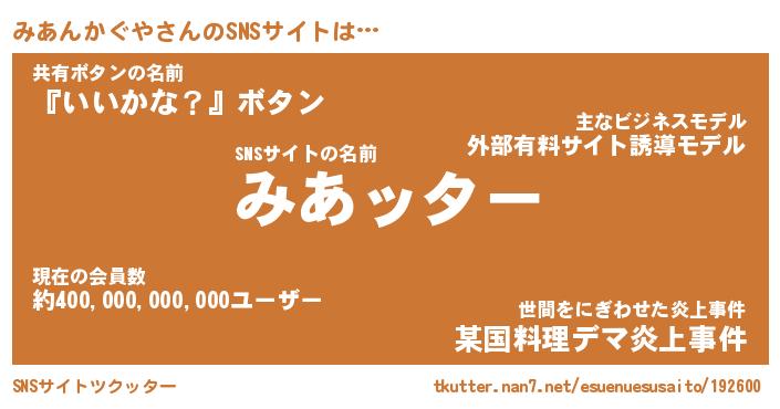 | 胡散臭い通販商品みたいなあだ名 | 『億万長者になれる水晶球…その名も「みあんかぐや」』 |