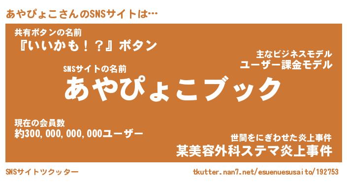 | 胡散臭い通販商品みたいなあだ名 | 『億万長者になれるブレスレット…その名も「あやぴょこ」』 |