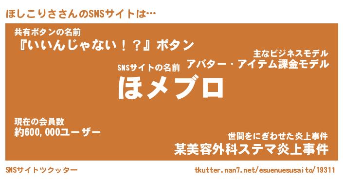 | ファンタジー風あだ名 | 『ホシフェル』『エターナルホシコリサー』 |