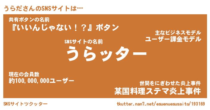 | 胡散臭い通販商品みたいなあだ名 | 『億万長者になれる水晶球…その名も「うらだ」』 |
