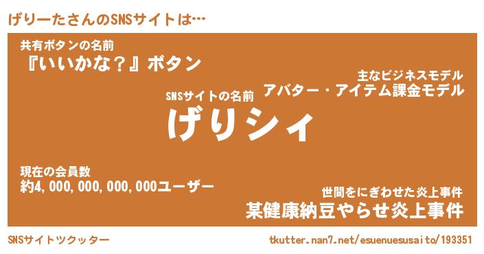 | ファンタジー風あだ名 | 『ゲリフェル』『エターナルゲリーター』 |