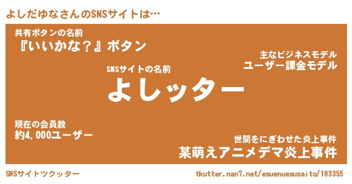 | 伝説のあだ名 | 『封印されしスナイパーよしだゆな』 |