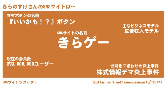 | 胡散臭い通販商品みたいなあだ名 | 『必ず成功する霊験あらたかなお札…その名も「きらのすけ」』 |