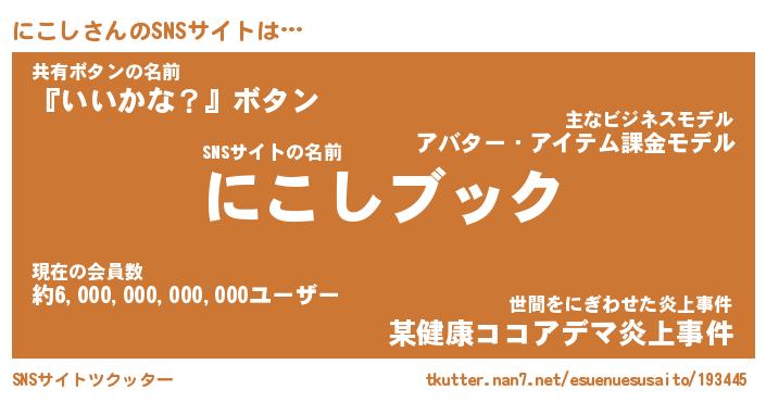 | ヘコむあだ名 | 『にこにゅー』『豆乳』『にこぷりん』 |