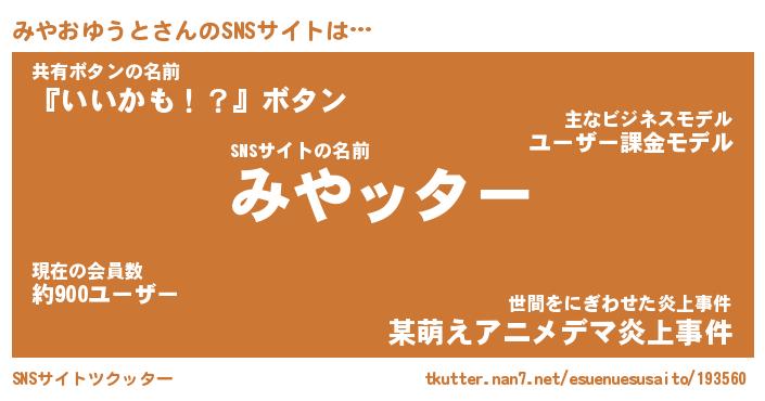 | 肩書あだ名 | 『みやおゆうと御曹司』 |