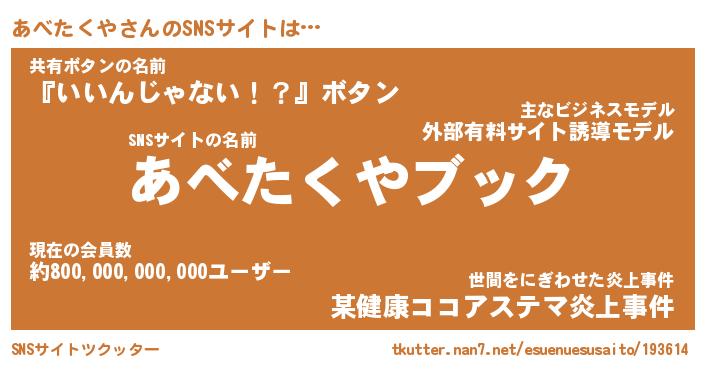 | 胡散臭い通販商品みたいなあだ名 | 『億万長者になれるブレスレット…その名も「あべたくや」』 |