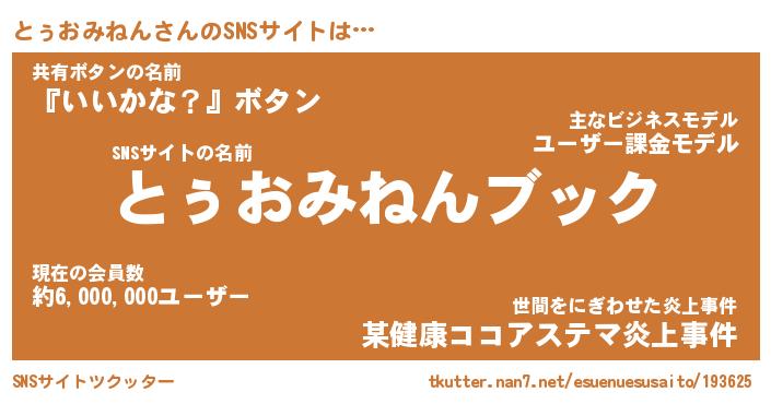 | ツイッター | とぅおみねんさんのツイッターID『namakemono_kun』 |