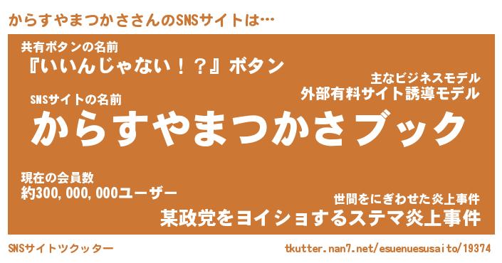 | 胡散臭い通販商品みたいなあだ名 | 『億万長者になれる水晶球…その名も「からすやまつかさ」』 |