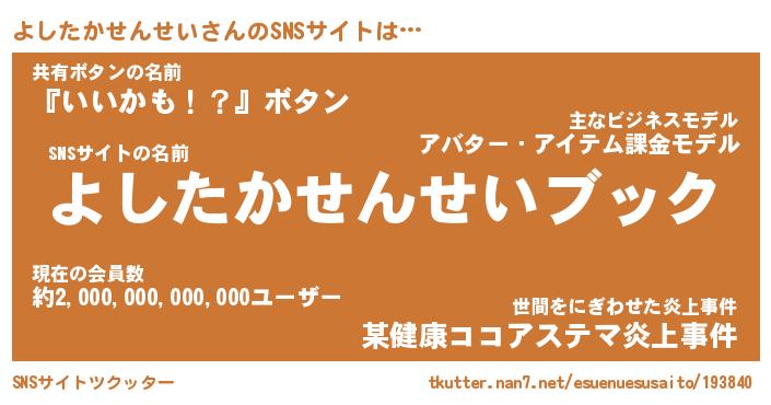 | 肩書あだ名 | 『よしたかせんせい社長』 |