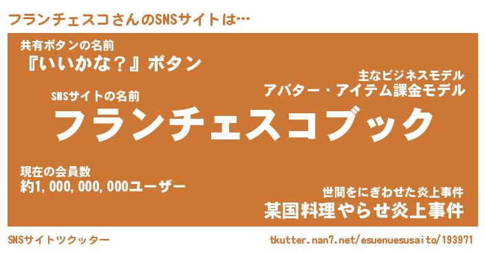| 胡散臭い通販商品みたいなあだ名 | 『億万長者になれる霊験あらたかなお札…その名も「フランチェスコ」』 |