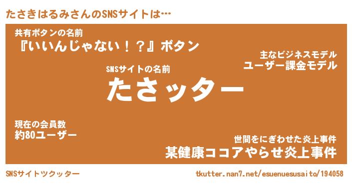 | 男性向けラノベタイトル風あだ名 | 『タサキハルミアートオンライン』 |