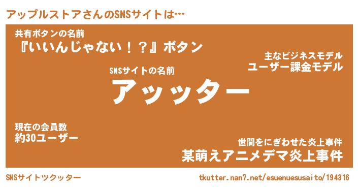 | 料理風あだ名 | 『ネギたっぷりアップルストアの南蛮漬け』 |