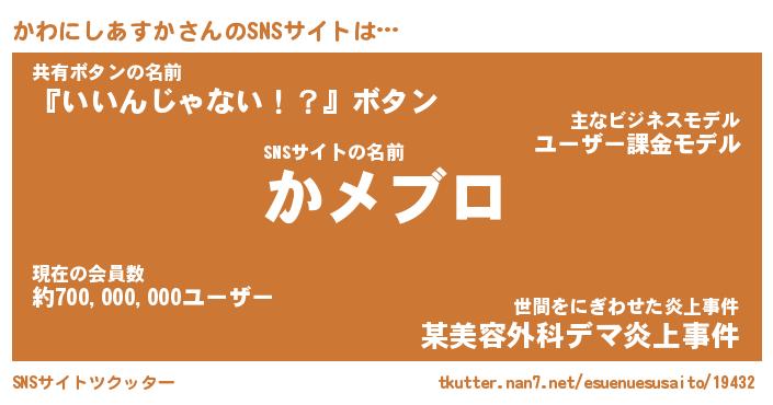 | 胡散臭い通販商品みたいなあだ名 | 『モテモテ間違いなし霊験あらたかなお札…その名も「かわにしあすか」』 |