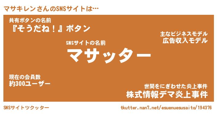 | 欧米人風あだ名 | 『マイケルマサキレン』 |