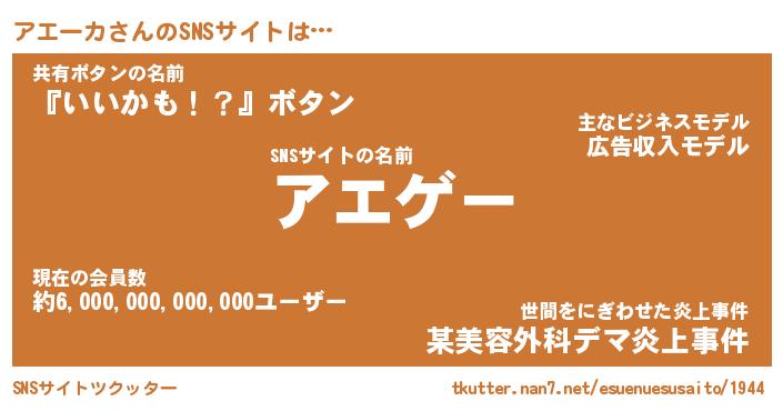| 意味不明あだ名 | 『ペロリンアエーカ』『永久保存アエーカ』 |