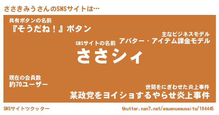 | ヘコむあだ名 | 『ささにゅー』『牛乳』『ささを』 |