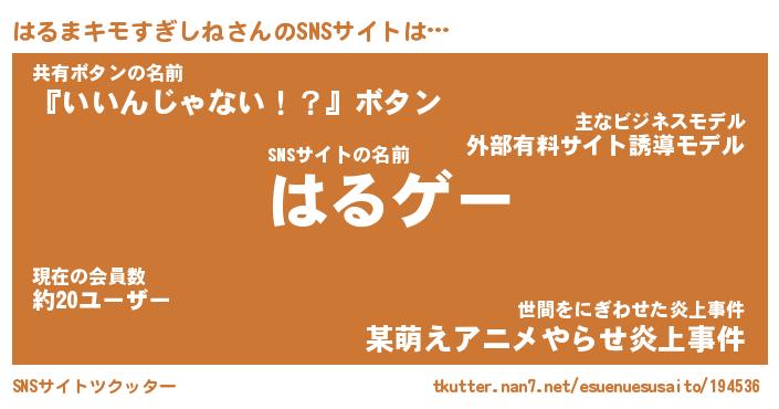 | ツイッター | はるまキモすぎしねさんのツイッターID『kikurage_man』 |
