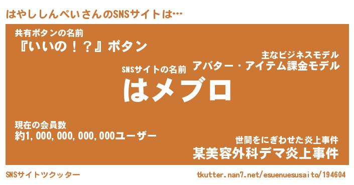 | 男性向けラノベタイトル風あだ名 | 『ハヤシシンペイアートオンライン』 |