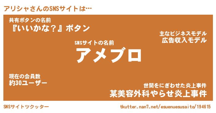 | 意味不明あだ名 | 『ペロリンアリシャ』『永久保存アリシャ』 |