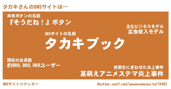 | 男性向けラノベタイトル風あだ名 | 『タカキアートオンライン』 |