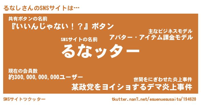 | 肩書あだ名 | 『るなしCEO』『るなし国家主席』 |