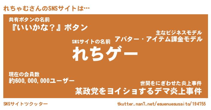 | ヘコむあだ名 | 『れちにゅー』『なまこ酢』『れちを』 |