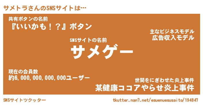 | 胡散臭い通販商品みたいなあだ名 | 『必ず成功する水晶球…その名も「サメトラ」』 |