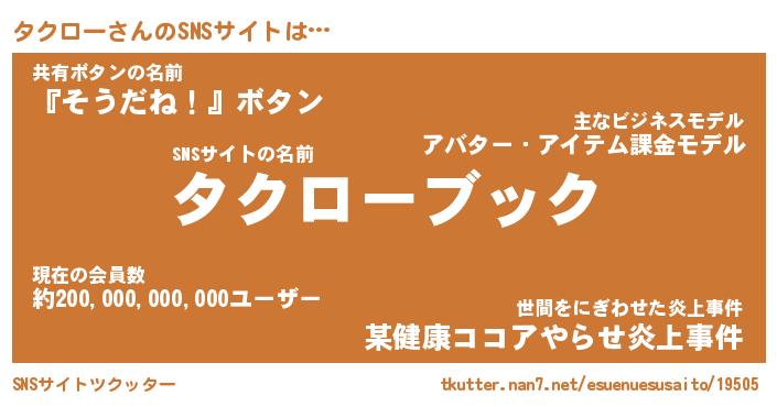 | 肩書あだ名 | 『タクロー社長』『タクロー総理大臣』 |