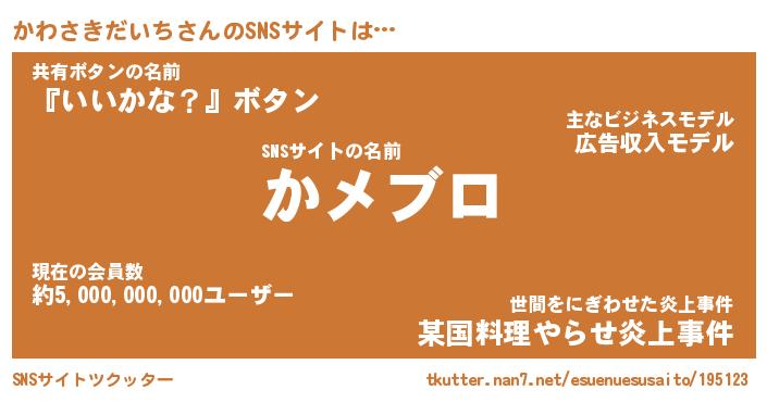 | ツイッター | かわさきだいちさんのツイッターID『dendenmushi_man』 |