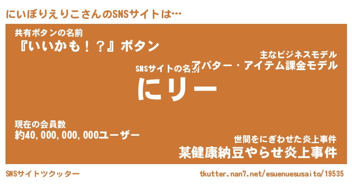 | 男性向けラノベタイトル風あだ名 | 『にいぼりえりこの憂鬱』 |