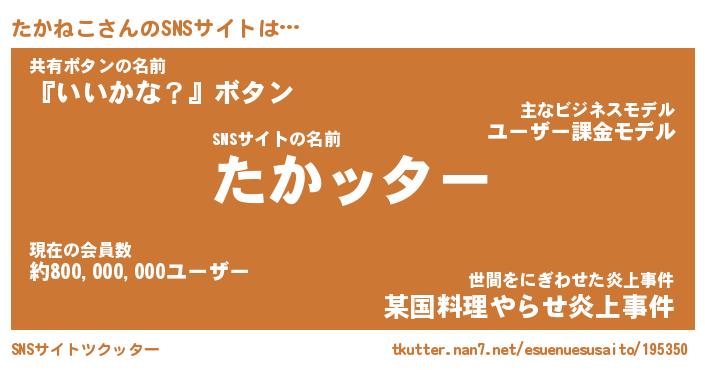| 意味不明あだ名 | 『ペロリンたかねこ』『永久保存たかねこ』 |