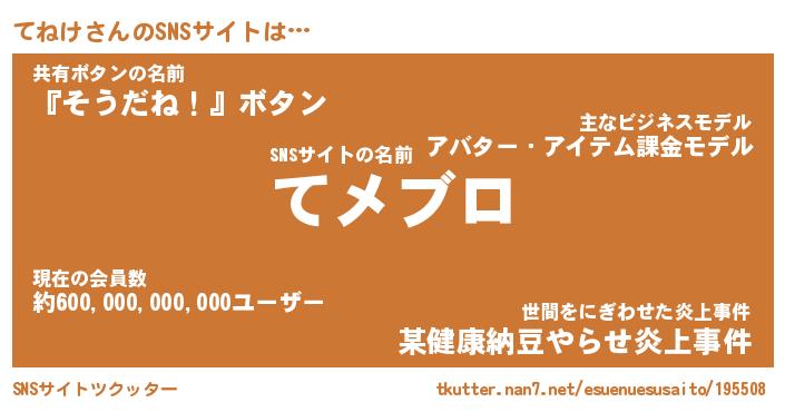 | 肩書あだ名 | 『てねけ社長』『てねけ大統領』 |