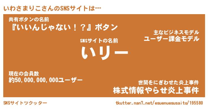 | 肩書あだ名 | 『いわさまりこ御曹司』 |