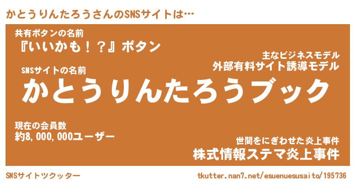 | 肩書あだ名 | 『かとうりんたろうCEO』 |