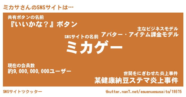 | ヘコむあだ名 | 『ミカにゅー』『レバニラ』『ミカお』 |