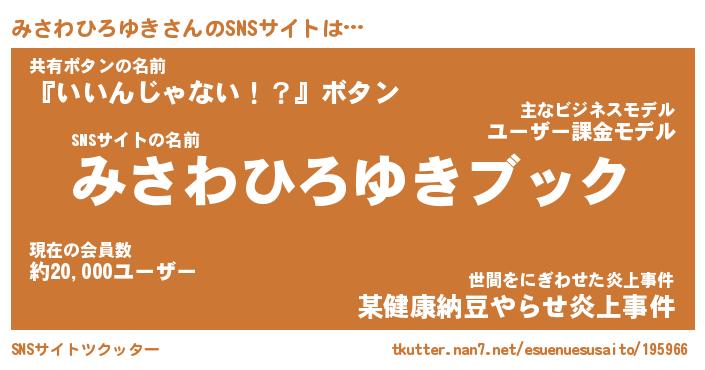 | 胡散臭い通販商品みたいなあだ名 | 『億万長者になれるブレスレット…その名も「みさわひろゆき」』 |
