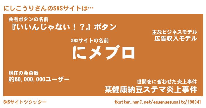 | 肩書あだ名 | 『にしこうりCEO』『にしこうり総理大臣』 |