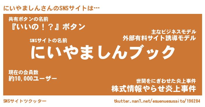 | 男性向けラノベタイトル風あだ名 | 『ニイヤマシンアートオンライン』 |