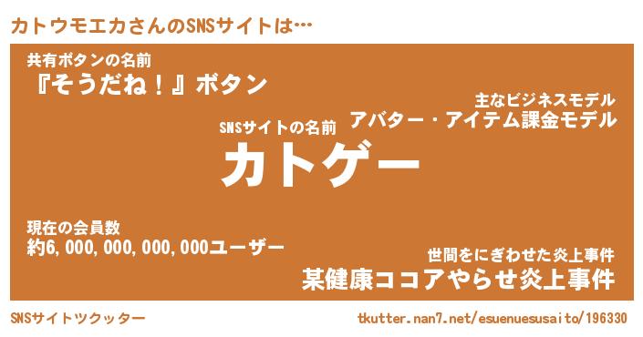 | 胡散臭い通販商品みたいなあだ名 | 『必ず成功する水晶球…その名も「カトウモエカ」』 |