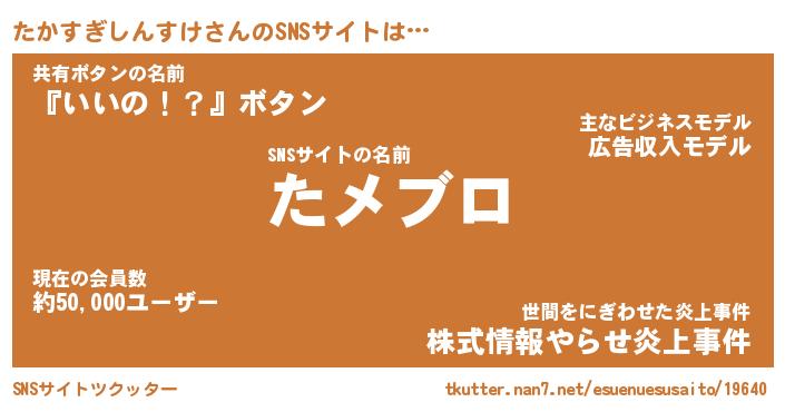 | 肩書あだ名 | 『たかすぎしんすけCEO』 |