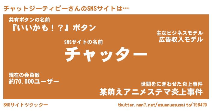| 伝説のあだ名 | 『封印されしスナイパーチャットジーティピー』 |