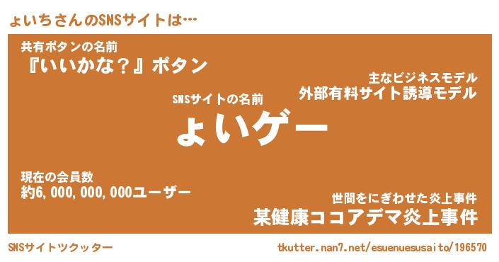 | 意味不明あだ名 | 『ペロリンょいち』『ょいちフォーエバー』 |