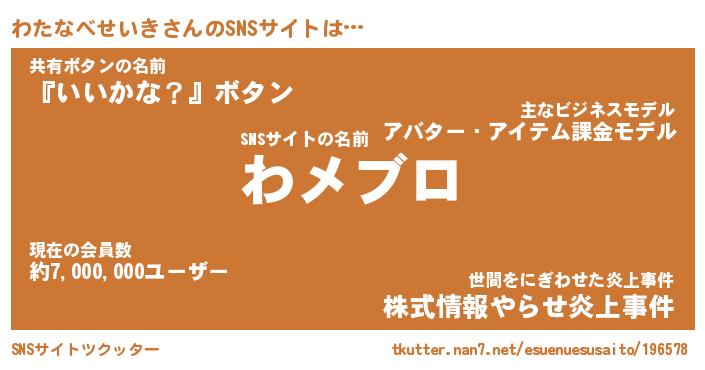| 肩書あだ名 | 『わたなべせいき社長』 |
