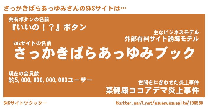 | 胡散臭い通販商品みたいなあだ名 | 『億万長者になれる水晶球…その名も「さっかきばらあっゆみ」』 |