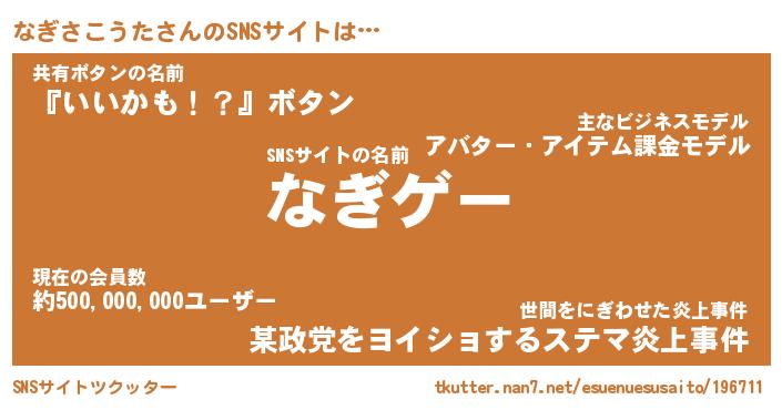 | ヘコむあだ名 | 『なぎにゅー』『牛乳』『なぎ太郎』 |