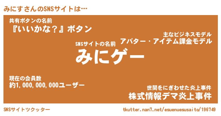 | 肩書あだ名 | 『みにすCEO』『みにす総理大臣』 |