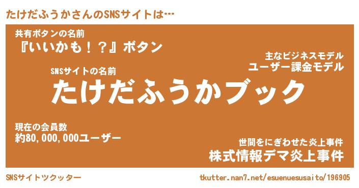 | 胡散臭い通販商品みたいなあだ名 | 『億万長者になれる水晶球…その名も「たけだふうか」』 |